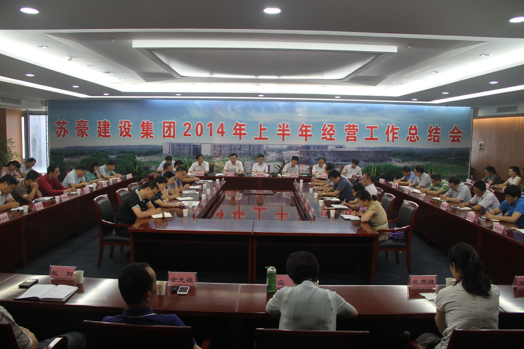 7月25日上午,蘇豪建設(shè)集團在蘇豪國際廣場A座五樓第四會議室召開2014年上半年經(jīng)營工作總結(jié)會,對上半年工作進行總結(jié)和分析,并對下半年工作進行部署和安排。控股集團副總裁、建設(shè)集團黨委書記余亦民參加會議并做重要講話,建設(shè)集團本部全體員工和子公司及項目負責人參加會議。周君總經(jīng)理代表集團經(jīng)營班子作《堅定信心、破冰前行,確保完成年度目標任務(wù)》工作報告,吳廷昌董事長傳達了控股集團上半年經(jīng)濟運行分析會議精神。
